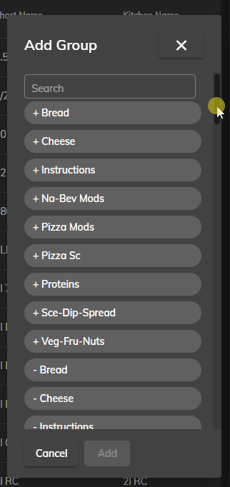 To add a Modifier Group, click 'Add Group'. A list will appear in front of you with all available Modifier Groups.