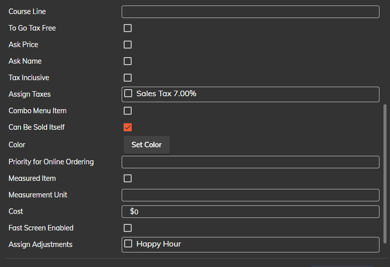 Assign Adjustments - Allows you to tie this item to specific adjustments. A guide on creating adjustments will be written at a later date.