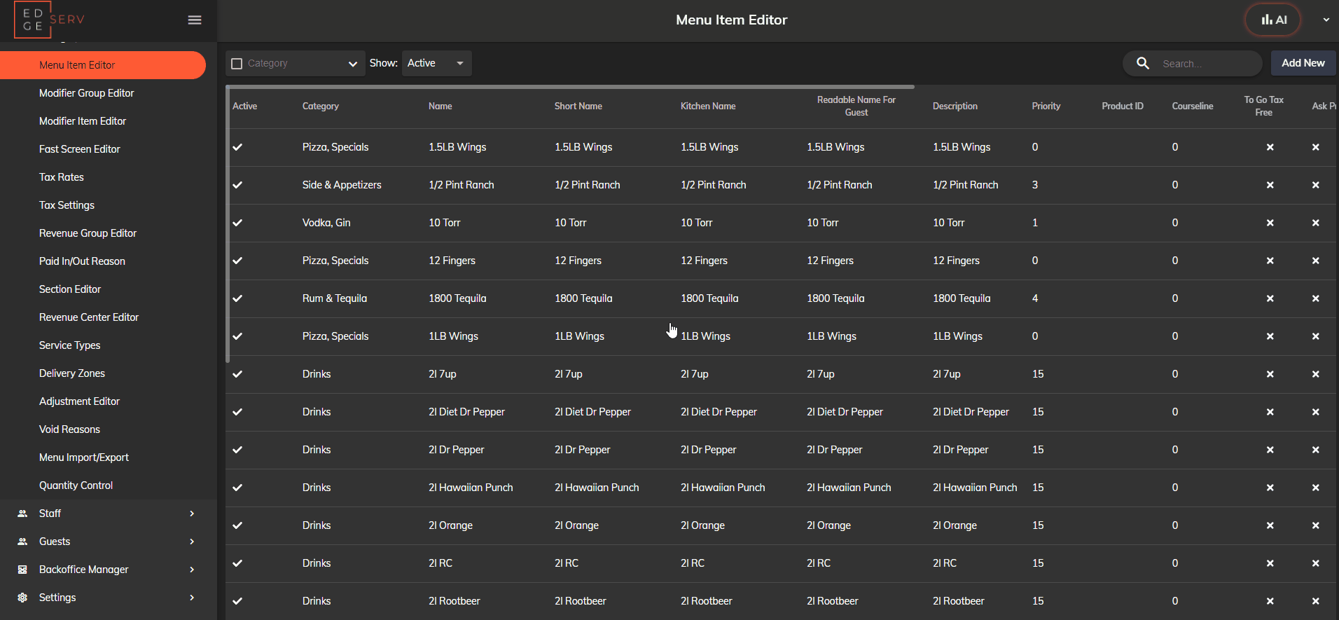 Active - Signifies if an item is active in the database. If this is unchecked, your item wont show up in your menu.